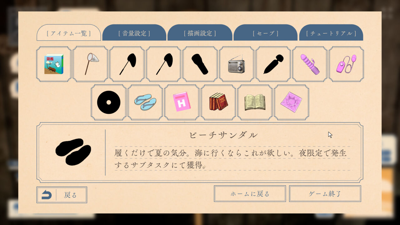最初から全コンテンツが解放されています。(体位、衣装、アイテム、虫図鑑)