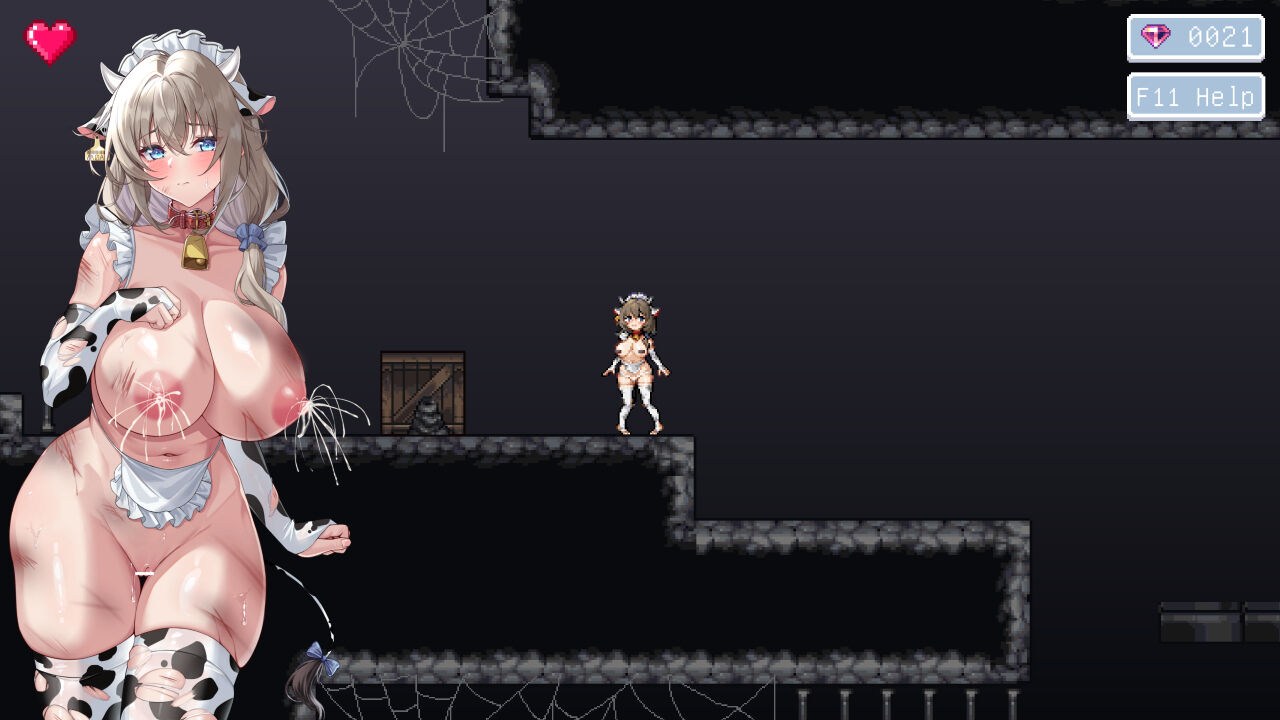 ご主人様のために牛娘ちゃんがダンジョンに潜る『トラップ × 横スクロールACT』作品です。