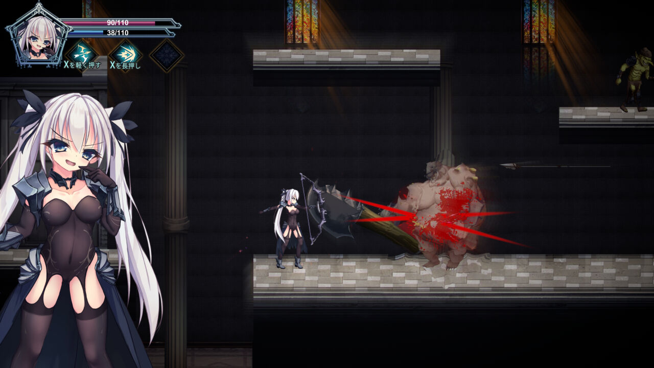 全4ステージのオーソドックスアクションです。「剣振り、弓射撃、溜め射撃、回復」があります。