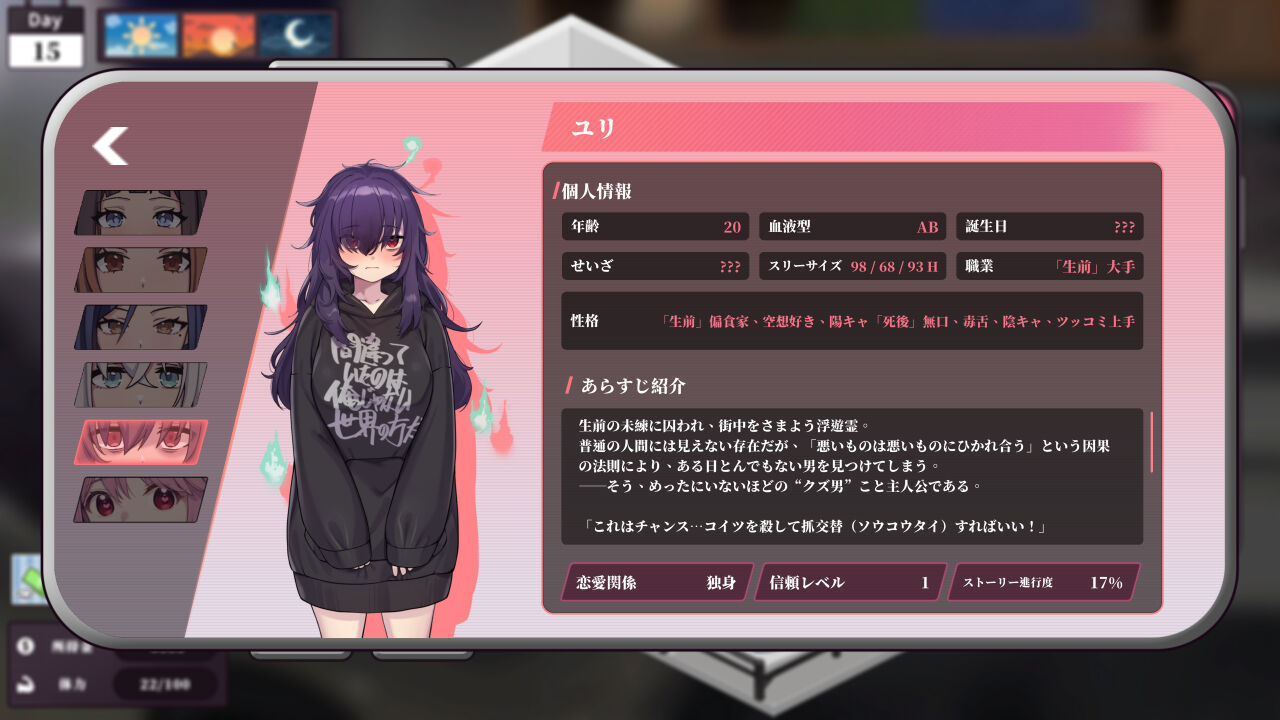 | ユリ | 01 | 怨念 | Lv.2 | 乗車イベント |