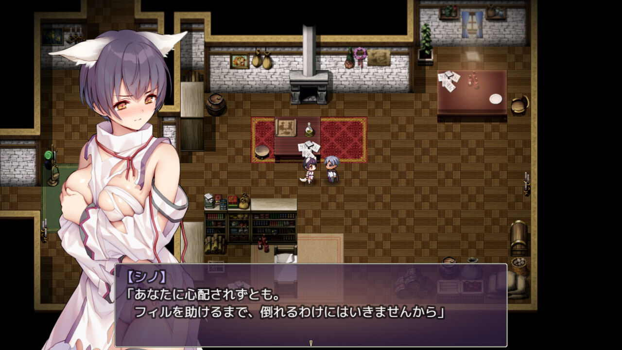 村で衣服破損状態のHシーンがあるため、回復しなくてOKです。