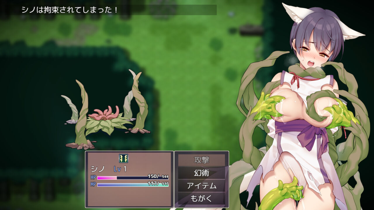 拘束攻撃では立ち絵が変化します。もがかずとも、弱点を突けば解放されるのでテンポが良いです。