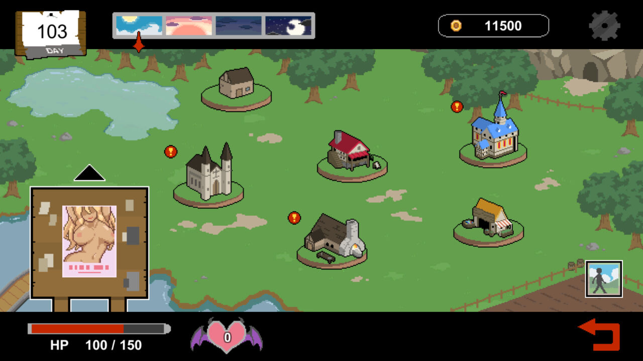 4つのミニゲーム(冒険者ギルド、鍛冶屋、酒場、教会)を繰り返し、
