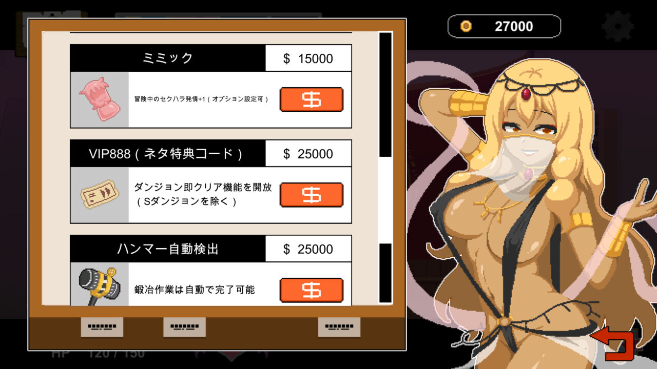 | 37 | はしたない子!!(次の攻撃が2回になる) | 戦闘中に「おしり」をセクハラする。(発情・ミミック購入済) |