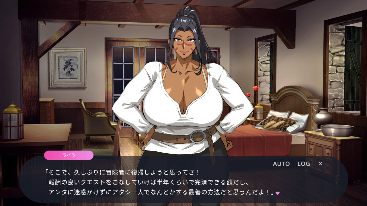 借金返済のため最愛の妻を裏クエストに派遣する『褐色筋肉人妻 × 寝取らせADV』作品です。